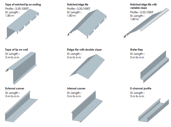 In accordance with our sales department, all elements could be folded on request up to a maximum length of 6 meters according to the customers’ drawings. The price will be defined on the basis of the developed and the number of folds. Gutters on request and according customers’ specifications