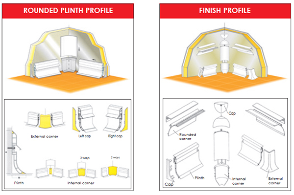 If the folded finishing elements or profiles have been soiled during the installation, cleaning shoud be made with clear water and soft brush.