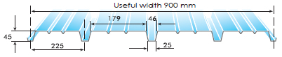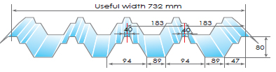 Caractéristiques techniquesThe LS 4.80.732 sheet is used in coverage long scopes from 3.60m up to 6.65m without intermediate supports.