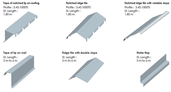 | COATING | Profiles are delivered in standard quality if there is no particular specificities : - galvanized only - Prepainted galvanized, external side with coating finishing polyester 25μ, PVDF or Plastisol top coats available on request |